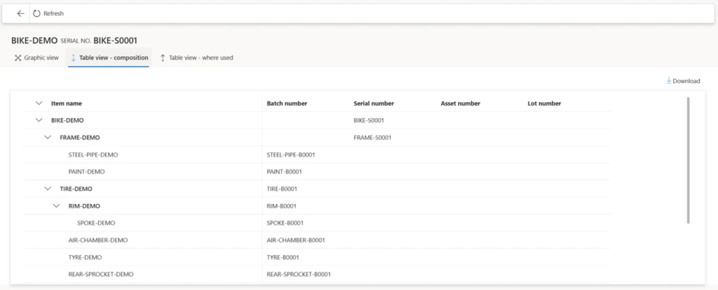 Traceability is part of Dynamics 365 SCM, so product genealogy data captured in Dynamics 365 is shared natively with Traceability. This now includes linking specific batch and serial components to batch and serial produced items with release of the tracked components feature in April 2024. Coming next is support for additional modules like Procurement, Sales, Asset management, Quality management, and more.