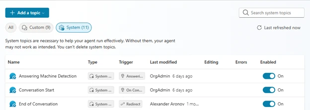 Customers can enable AMD through the answering machine detection system topic in Copilot Studio. When a machine is detected, the system automatically follows the predefined flows, like playing a customized message or ending the call. This improves predictability across outbound engagements by helping teams avoid nonproductive connections.