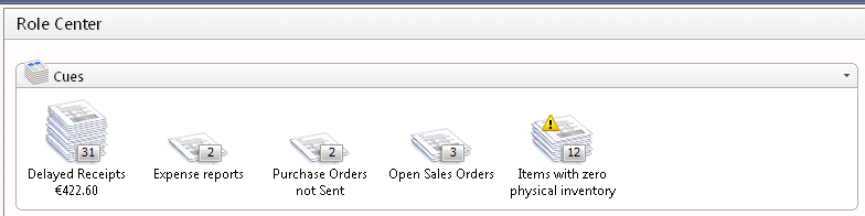 Now let’s go back to the Role Center page and see what we will get when we add our newly created Cue to the Cues Web part. To do this, we enter the page Edit Mode again, select Cue 6 to modify, to put our new Cue to the last position and then select Items with zero physical inventory from the View drop down, then click OK to apply the changes. Now we can see our new Cue: