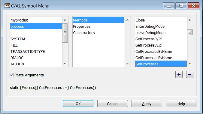 Rather than elaborate more on the properties and definitions, let’s look at a sample. In this code sample, we will use methods from the .NET Framework to retrieve a list of processes running on the NAV Server and show the process IDs in a message box. The sample is not exactly an ERP task but shows what can now be achieved by using .NET and hopes to show that familiar code patterns can be applied.
