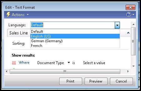 But this is “hardcode” language set. What if we want to set language dynamically? Lets say i want to set report language in request page and choose between: Default; English (US), German, French formats.