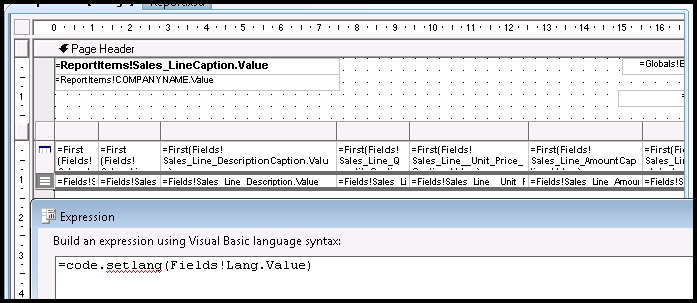 Now return to RDL sections, select whole row (or all textboxes) and in language parameter write in expression: =code.SetLang(Fields!Lang.Value)