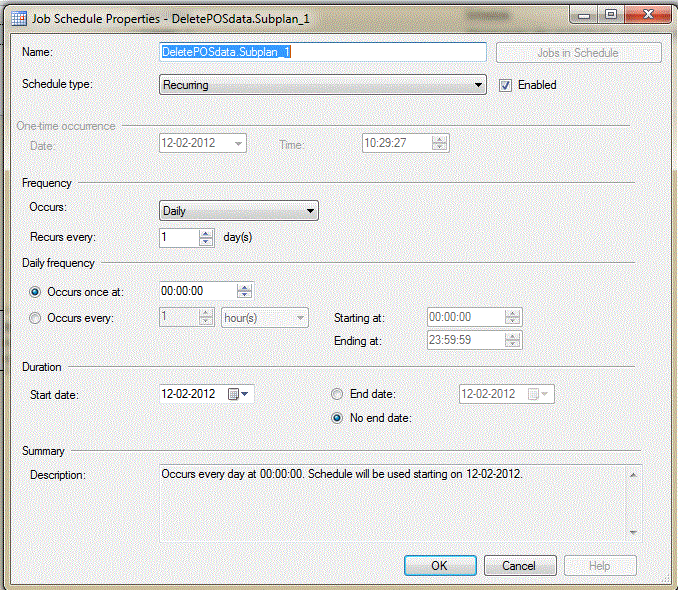 6. Edit the Job schedule and let it run every day