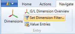 In page 20 General Ledger Entries, in the Entry group, choose Set Dimension Filter.