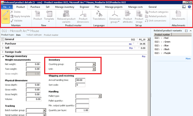 Also, the system allows you to modify the shared product template from the Product details form. This makes it easy to identify all the fields that you want to change.