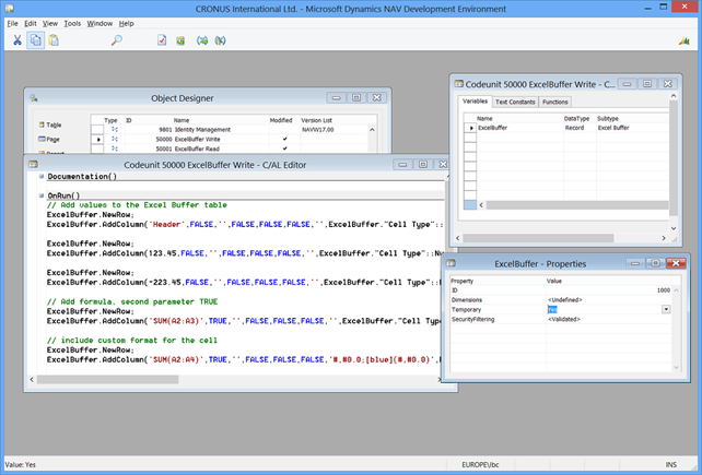 This article explains some of the changes that were made to the Excel Buffer table (table 370) and gives examples of how to use and extend the table with the new Open XML functionality from C/AL.