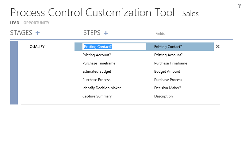 Then you can build your own process using the “Process Control Customization Tool” where you can edit/add your “Stages”, “Steps”, and “Fields”