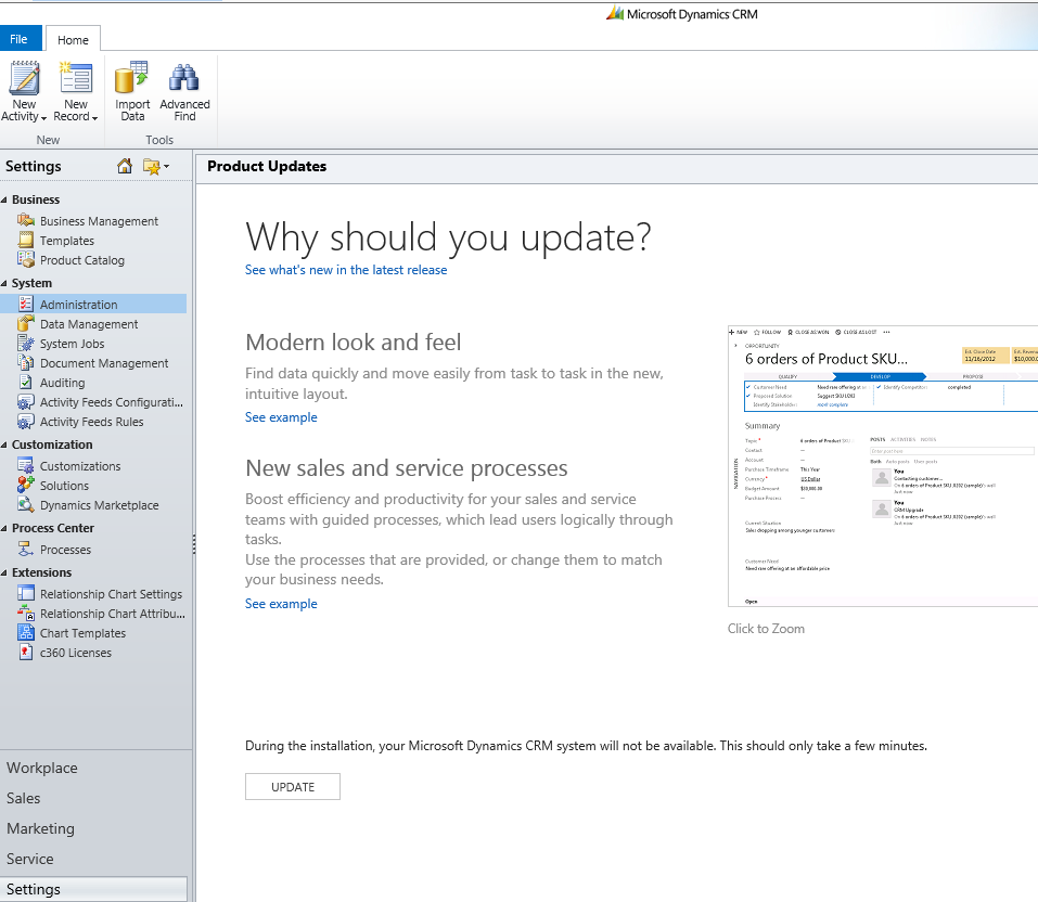 9. Opt-In– Existing customers can Opt-In to the new Update experience. This is not an auto-update. You can Opt In by going to Settings>Administration> Product Updates> Update.