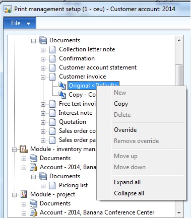 - When the Posting Invoice closing Window closes a message that says: Some print management report destination are not valid for