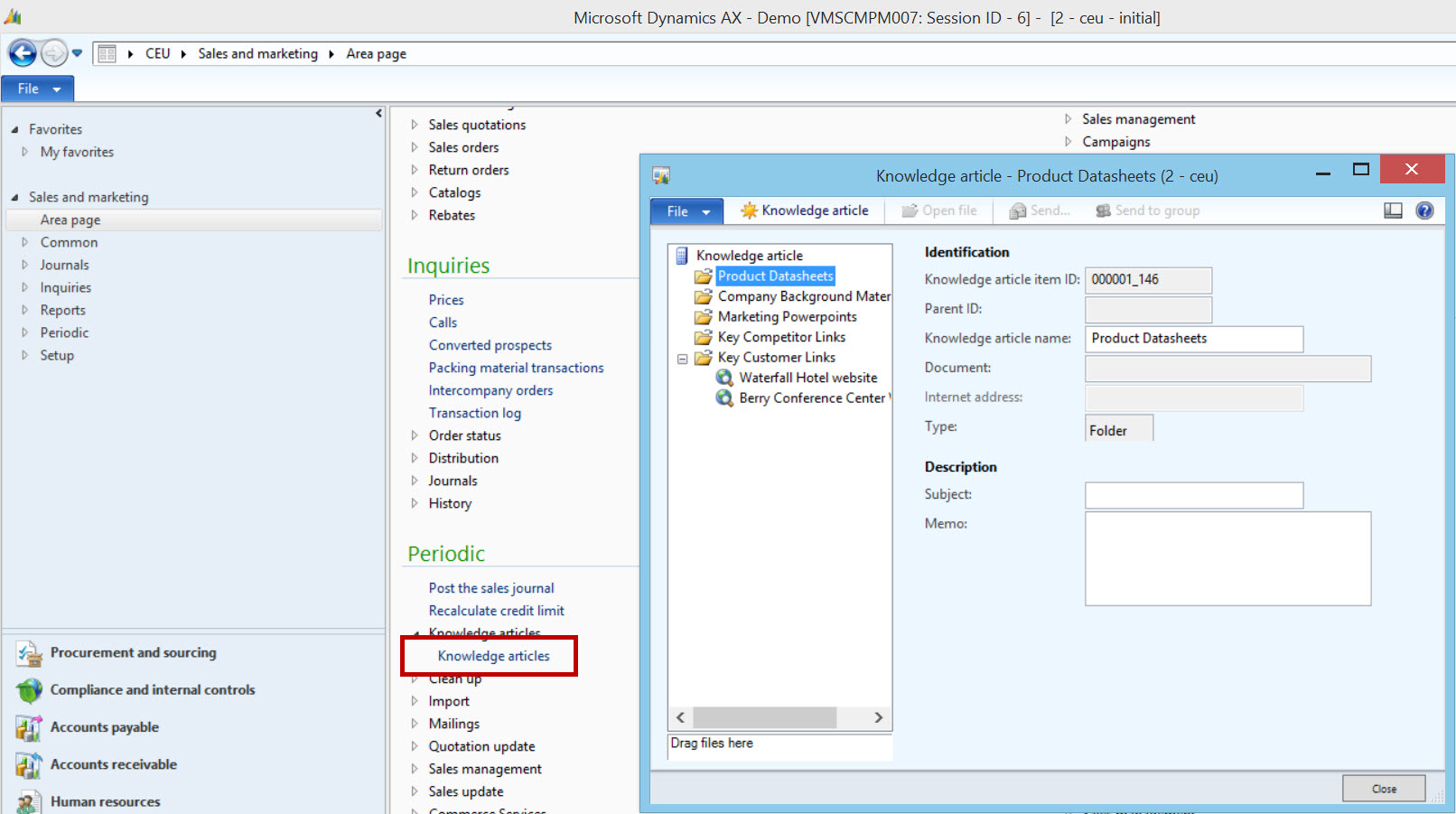 Encyclopedia as it was called in AX2009 and before, and renamed to Knowledge articles in AX2012 is a bit of an odd bird. It was designed in 2000 as a “knowledge repository” for the sales and marketing department and introduced into AX with the Axapta 2.5 market pack. At the time there were thoughts about having multiple views both personal, unit and company specific views which unfortunately did not happen.