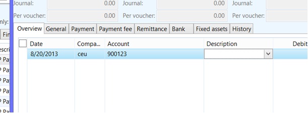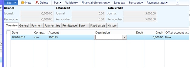 11. In the Payment Journal form there will be a new line created. Select the payment journal name from the Name dropdown field