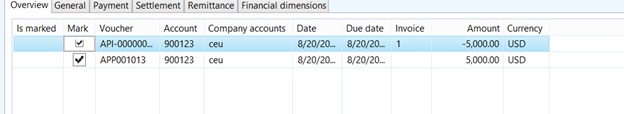 8. In the Settle Open Transactions form, you will see the invoice and payment vouchers that we previously reversed signifying that the link between the vouchers has been severed.