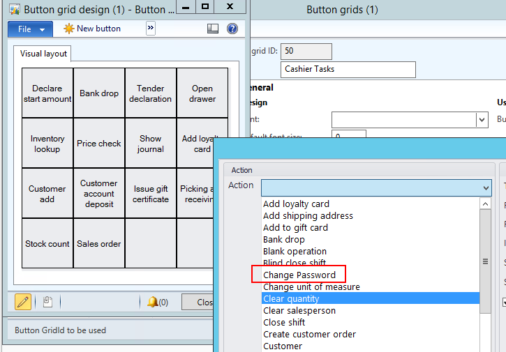 First of all there is a minor issue that you need to take care of in AX before you can add the new operations to buttons in the screen layout.  If you go to your button grid layout designer and attempt to add either of these two operations to a button you will notice that the operations do not appear in the selection list.  This list is defined by the RETAILOPERATIONS table, which is normally populated during the Initialization process (Retail Parameters window).  However, the two new operations and permissions were left out of the seed data (we’ll get that taken care of in a future release) so they need to be created manually.