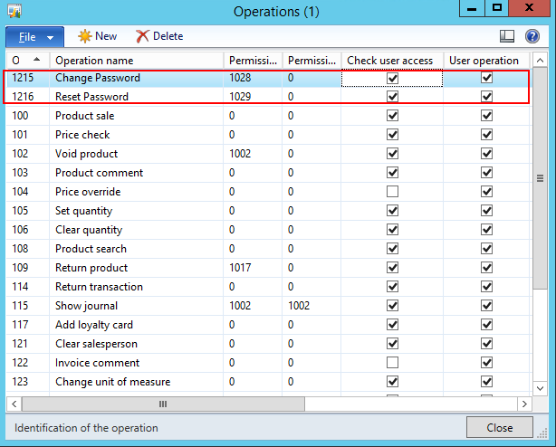 • The Change Password operation uses the standard POS security model; the user will be prompted for manager credentials if he or she does not have access.  However, in order to use the Reset Password operation the user has to have the permission explicitly granted.  Manager privileges are not sufficient.