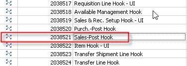Step 3, it’s time to hook it to its corresponding object and right place in the business logic of that object.  You do this by declaring your codeunit as a global in your object, and using the created hook function on its place in the business logic.  This way, these one-liners apply: