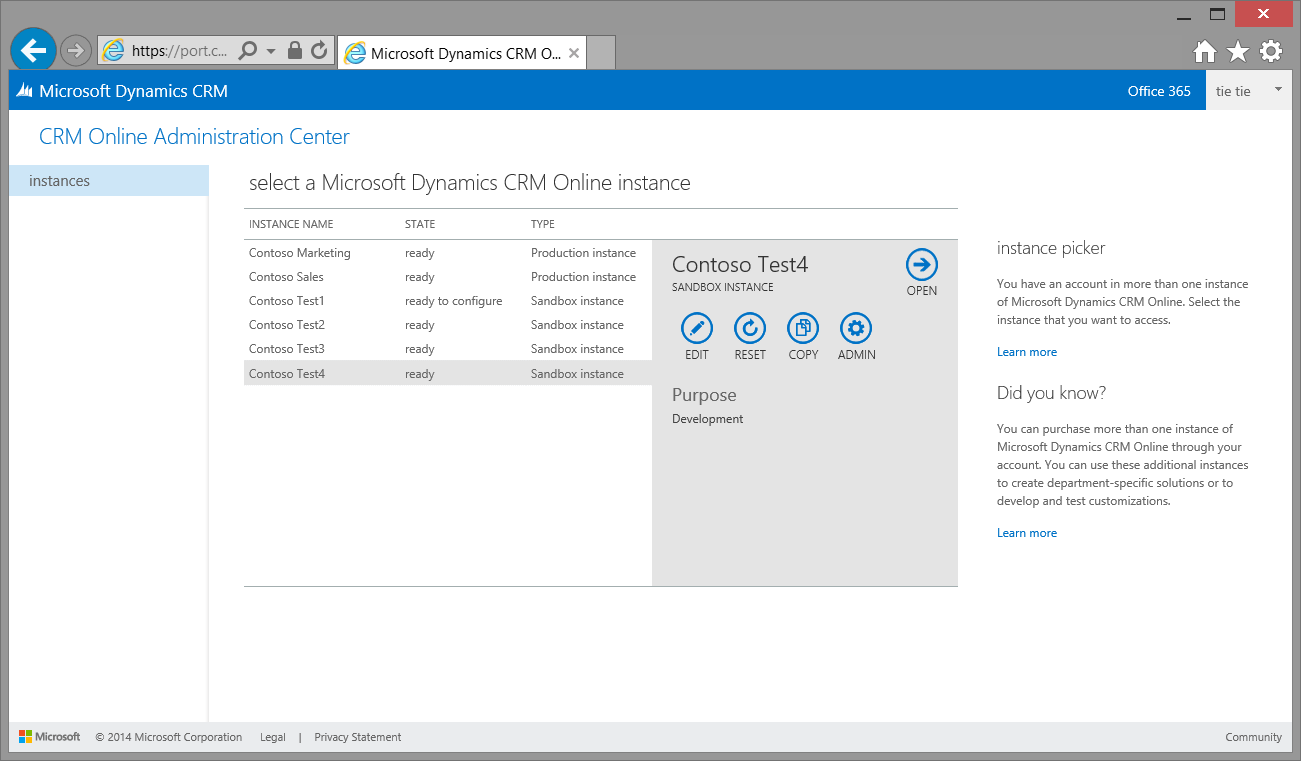 Dynamics CRM Online 2013 introduced the concept of non-production, test, instances.  These instances could either be purchased as an add-on to your subscription or you would be granted a single free non-production instance if you purchased 25 or more user licenses for CRM Online.  Since they are either purchased at a considerable discount from additional production instances or free, these instances may only be used for non-production purposes.  Earlier this year we published a thorough blog post introducing test instances.