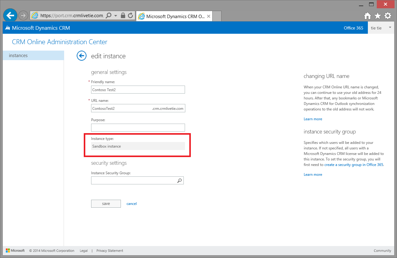 • Free Test instance and Paid Test instance types have been renamed Sandbox instance.  See the edit settings page in the CRM Online admin center: