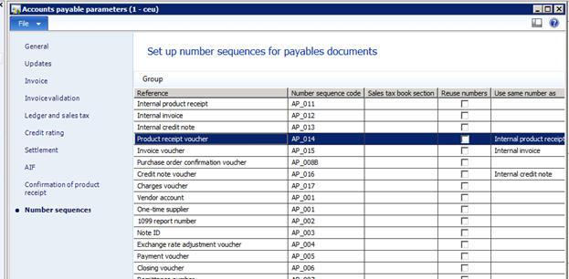 Since the Product Receipt Voucher is auto populated you can find it setup in the Accounts Payable Parameters form under the Number Sequences link.  Accounts Payable | Setup | Accounts Payable Parameters