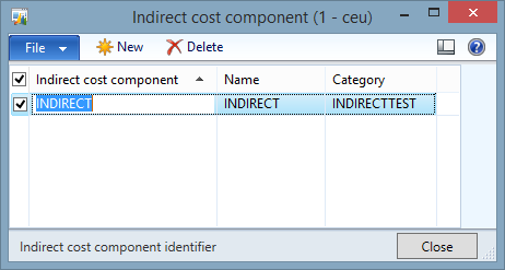 - There are three forms for setting up indirect costs. The “Indirect cost component” maps the indirect cost component header (name) to the project category. Go to Project management and accounting | Setup | Indirect costs | Indirect cost components. Click “New”, enter a name of the indirect costs for the “Indirect cost component” and “Name”, and select the project category we created earlier for the “Category”. Close the form.
