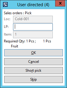 If I select Pick cold zone in the menu, the following screen is displayed.