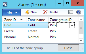 Many warehouse are divided into zones, for example, cold storage zones or freezer zones, and warehouse workers typically work in one zone at a time. This blog describes how to set up Warehouse management in Microsoft Dynamics AX2012 R3 to assign work orders to zones and direct work to a worker in a specific zone.