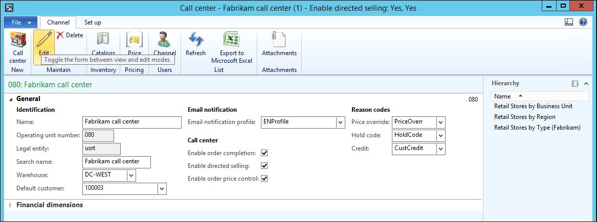 A non-call center channel user would see the following: