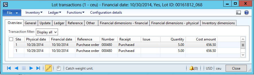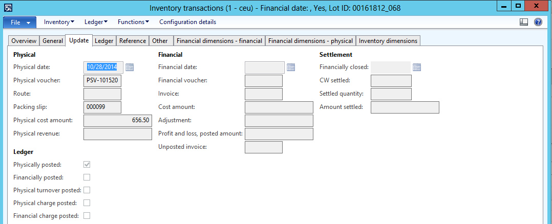 | Inventory Management/Item model group | Post financial inventory | Yes |