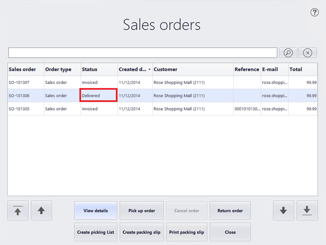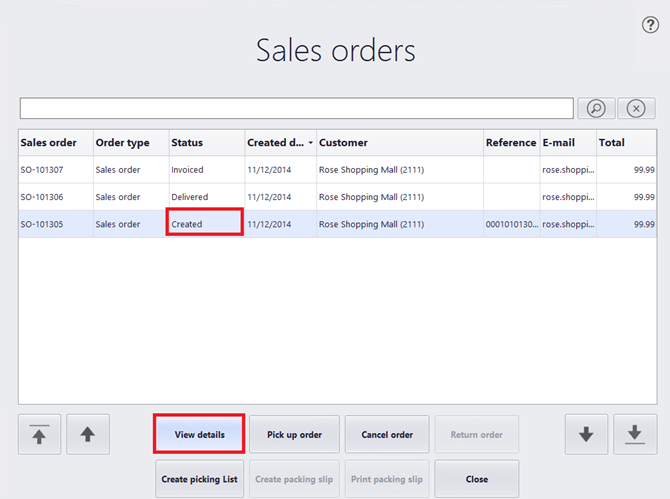 You can then go back into the Sales order function, select the Created sales order and select Pick up order.