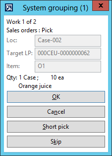 To print a label per picked case, 2 work orders are needed for the case picking zone: