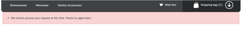 Error message: We cannot process your request at this time. Please try again later.System.NullReferenceException: Object reference not set to an instance of an object. at