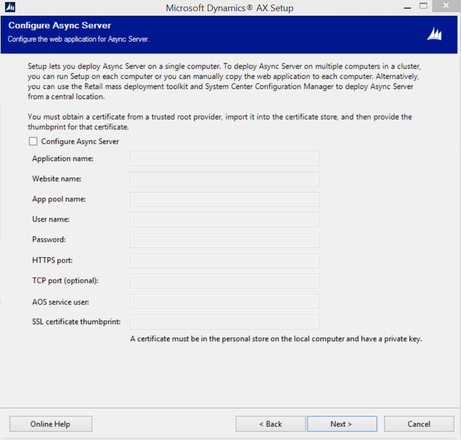 2. Select to Install the Microsoft Dynamics AX 2012 R3  Async Server