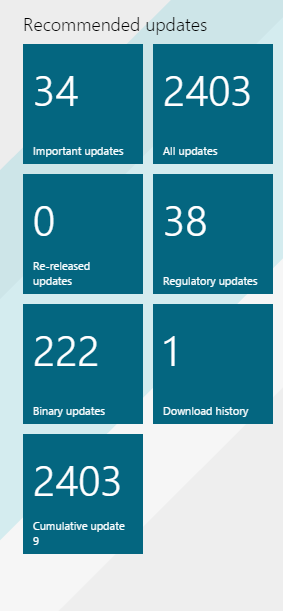- Cumulative update – This tile provides access to the latest cumulative update.