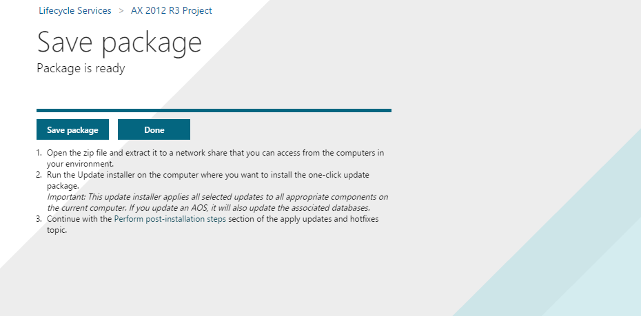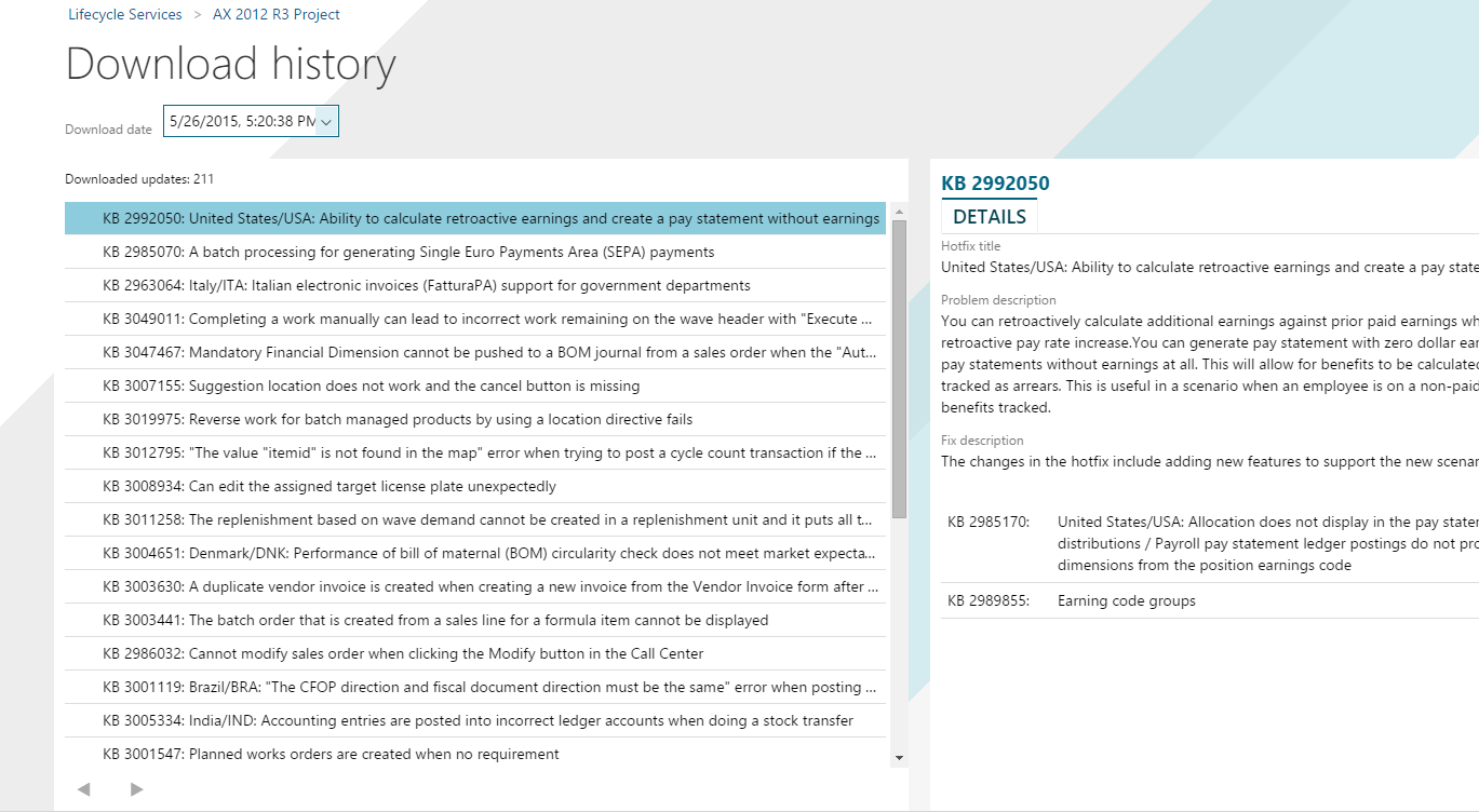 The new AX 2012 R3 update experience is available on Lifecycle Services starting in the May release.