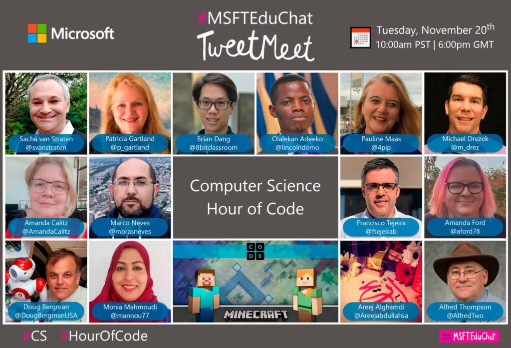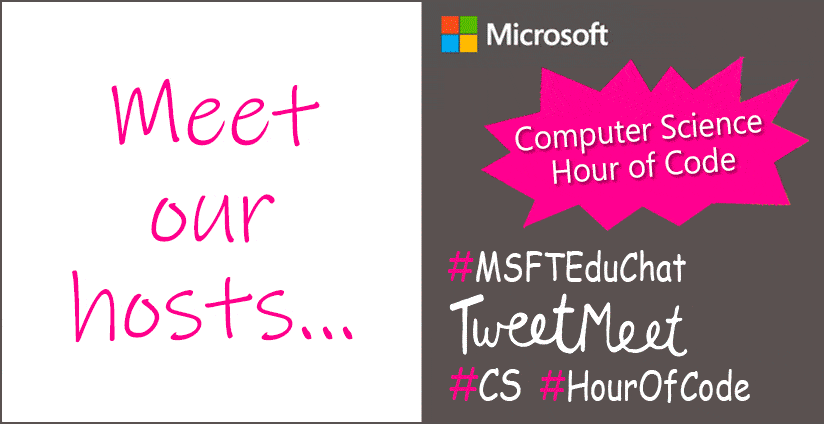 Calling all classrooms with up-and-coming coders and app makers-to-be: Computer Science Education Week is happening on December 3 – 9 this year. In celebration of this event, our 14 global hosts are excited to offer you a new #MSFTEduChat TweetMeet on Computer Science, Hour of Code and Computational Thinking.