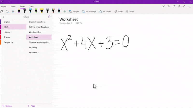 - Math Class Notebook switch for teachers to control feature availability to students in OneNote UWP and OneNote Online.