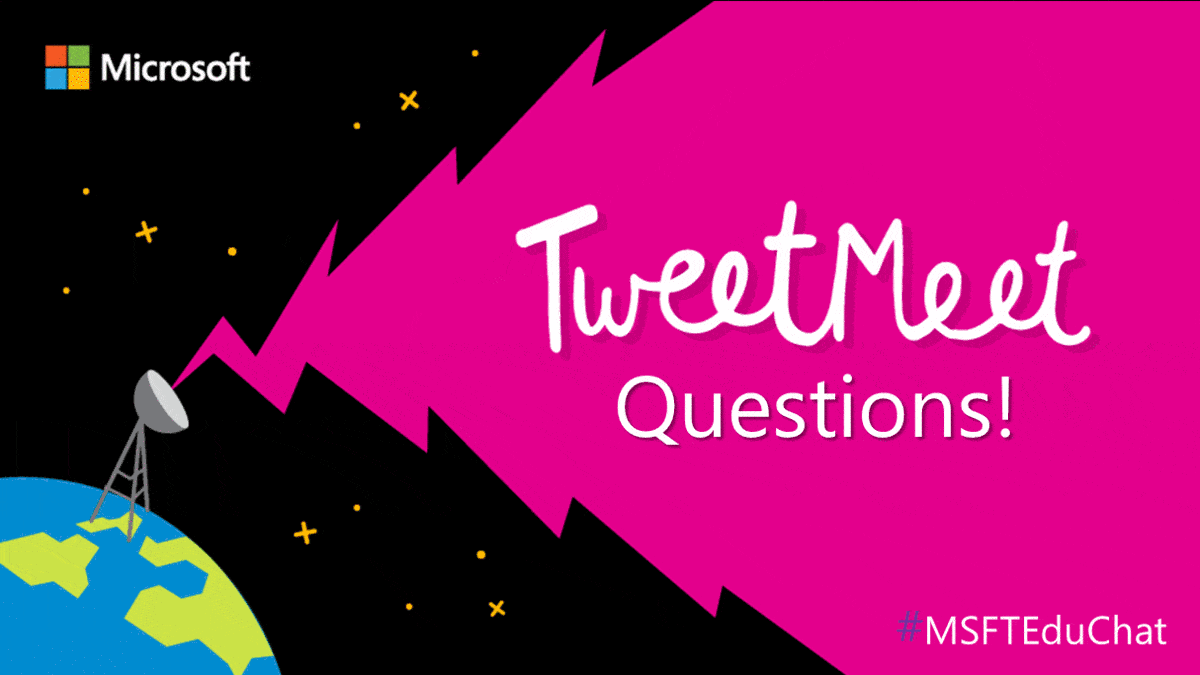TweetMeets are monthly recurring Twitter conversations about themes relevant to educators, facilitated by Microsoft Education. The purpose of these events is to help professionals in education to learn from each other and inspire their students while they are preparing for their future. The TweetMeets also nurture personal learning networks among educators from across the globe.