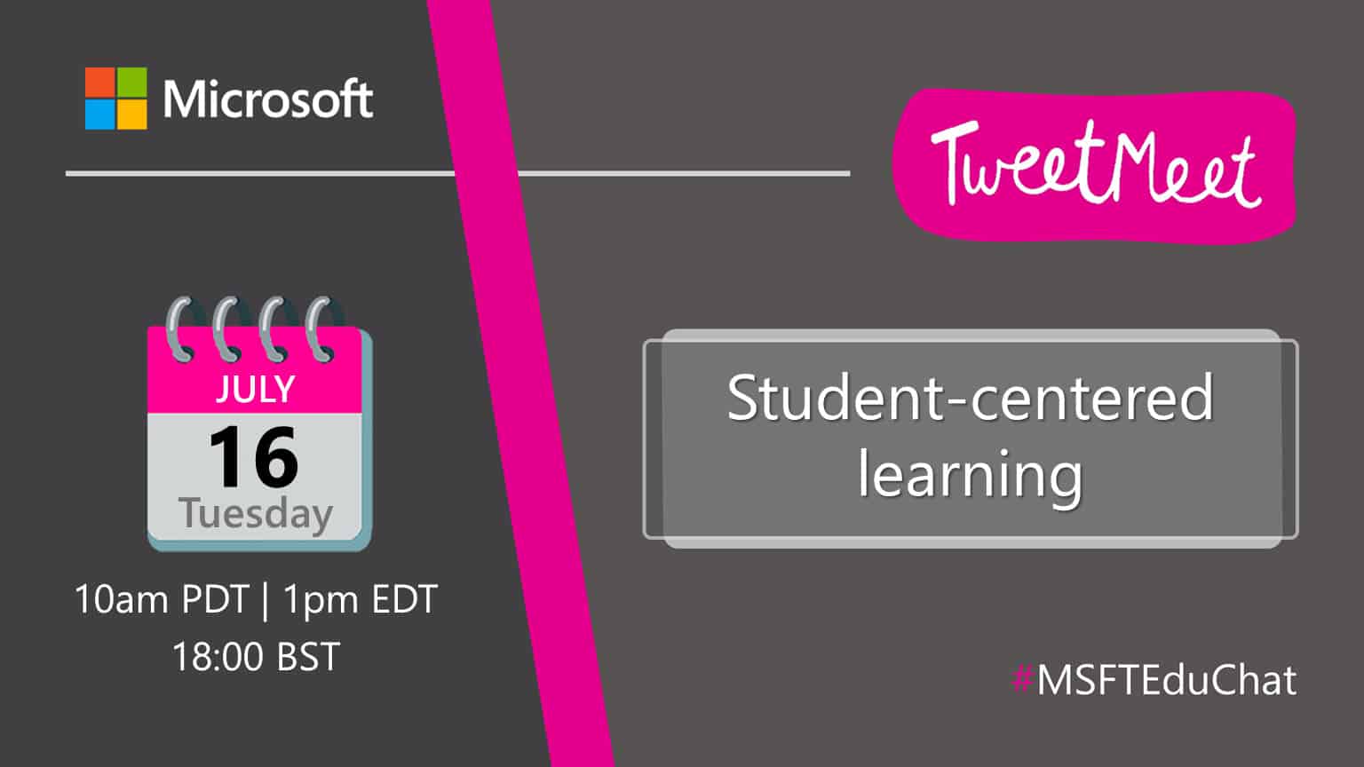 Join us Tuesday, July 16 from 10:00 a.m. to 11:15 a.m. PDT on Twitter using the hashtags #MSFTEduChat, #MicrosoftTeams and #MicrosoftEDU (which you can always use to stay in touch with us). Be sure to double-check your own local event time. You can find the event time for 215 countries with this time zone announcer.