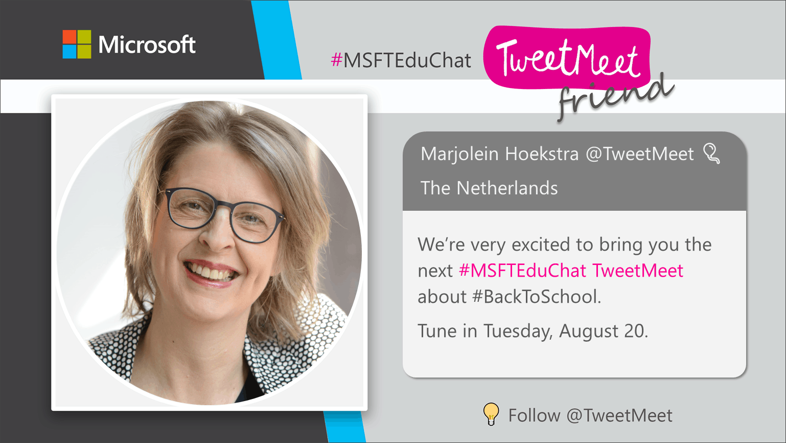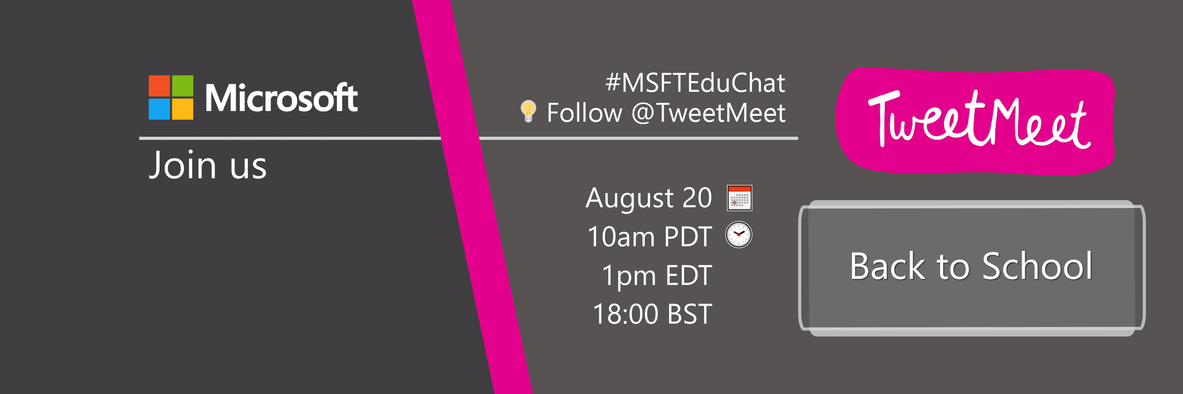 On August 20, right after the Back to School Facebook Live event, we’re bringing you two more opportunities for inspiration ahead of the new school year: an #MSFTEduChat TweetMeet and a Teams Live Event.