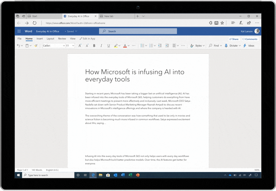 Also check out this blog from the recent Microsoft Ignite Conference to learn about AI-related innovations within Microsoft 365, the cloud-powered productivity service.