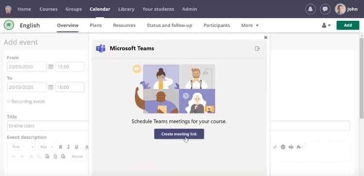 As soon as you save your content, a new Teams meeting will be created and attached. Learn more about the itsLearning integration here.