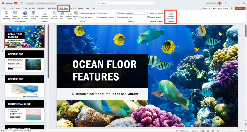 To start using Speaker Coach in PowerPoint: