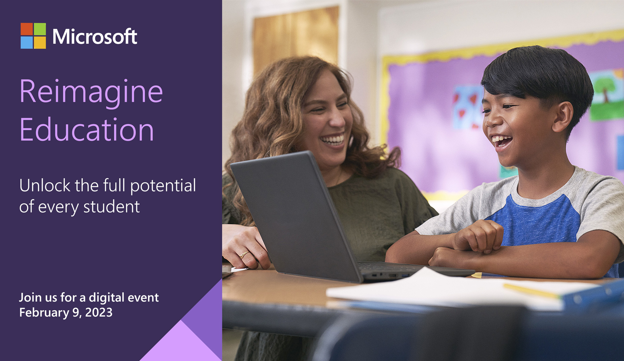 We are excited to invite you to Reimagine Education, a worldwide K-12 digital event taking place February 9, 2023 at 9:00 AM PT (UTC-8) and 6:00 PM PT (UTC-8).