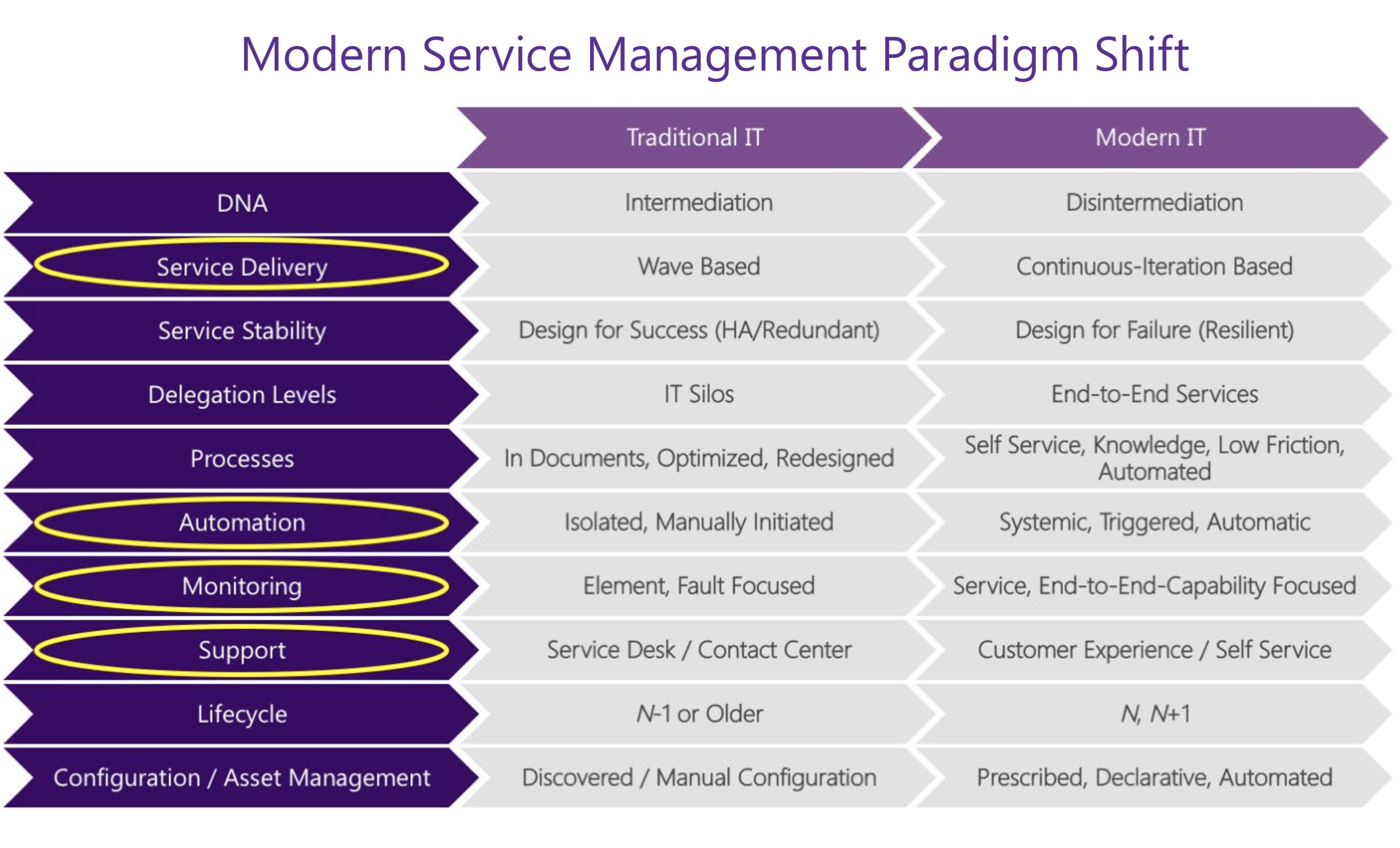 While most large-scale IT systems and structures have been refined to high levels of maturity over the years, simply managing and maintaining your current technology is no longer enough. Why? Because modern applications and services have far outpaced traditional ITSM practices, requiring a paradigm shift from traditional IT practices to ones focused on continual service improvement, automation, and integration.