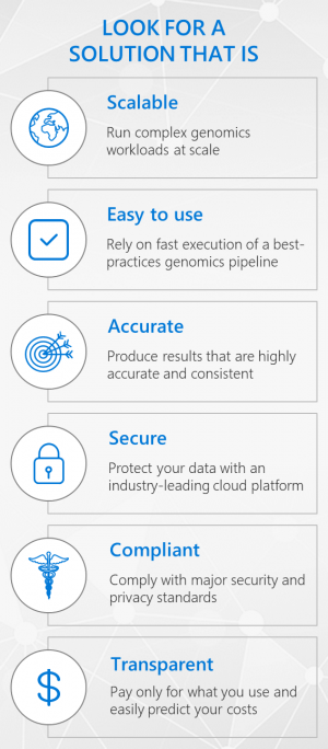 With over a decade of research in genomic, Microsoft is committed to enabling healthcare organizations to overcome the hurdles to genomic analysis. That’s why we offer Microsoft Genomics, a scalable, secure, compliant cloud solution for genomic analysis.
