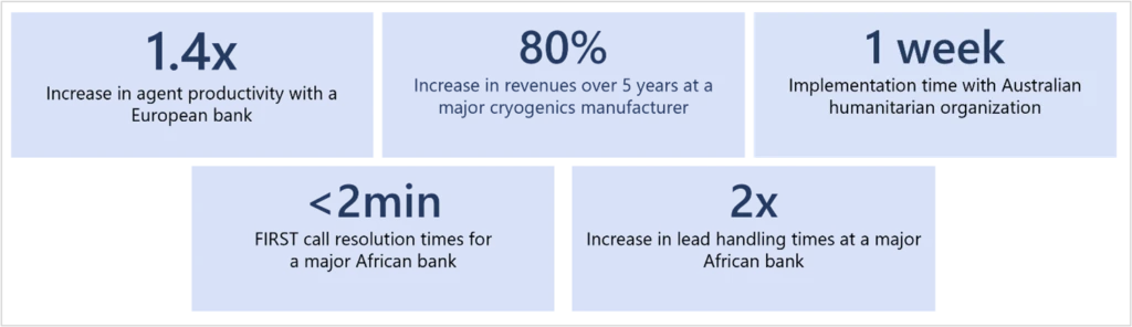 For agents, Dynamics 365 Customer Service can help accelerate issue resolution, strengthen cross-team collaboration, and proactively surface information at the right time to quickly resolve customer issues rapidly. Figure 2 summarizes some exciting customer outcomes from Dynamics 365 Customer Service.