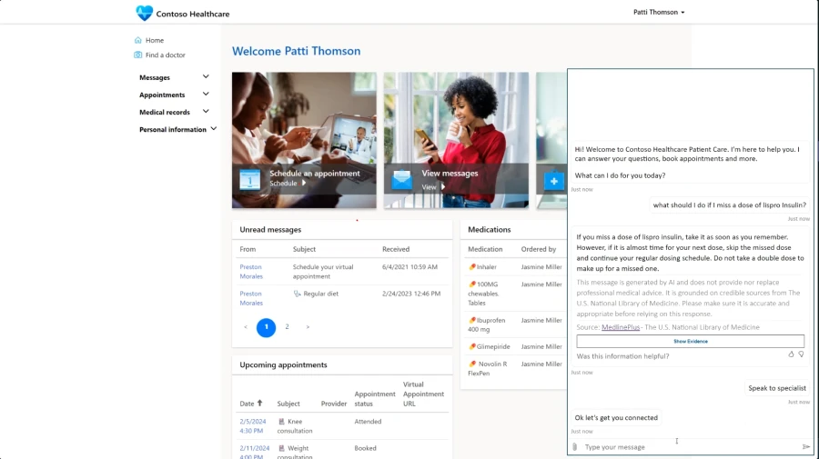 Georg Isbary, Head of Portfolio and Customer Excellence and Elias Zimmer, Manager Digital Customer Excellence from Roche Pharma Germany, shared more about how they are using the Azure AI Health Bot to power their copilot experience: