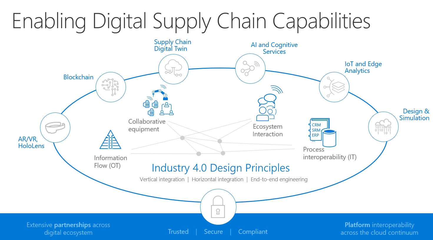 From driving predictability, efficiency and agility to monitoring equipment and improving field service, IoT is integral to enterprise digital transformation that extends beyond the manufacturing shop floor and across your supply chain management. Starting with IoT and edge analytics, digital supply chains can transform using the concepts of an Operational Digital Twin, use Artificial Intelligence (AI) and Cognitive Services to make analytics smarter, along with an advanced level of security and compliance.