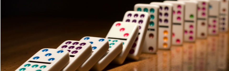 The domino effect describes how one seemingly insignificant event, like a domino tipping over, can lead to a larger, unforeseen outcome. As one event concludes, it sets off another, and another, and another, until a larger outcome comes into view. And while it may have been difficult to predict the result, it’s easy to see how the chain of factors led to that conclusion.