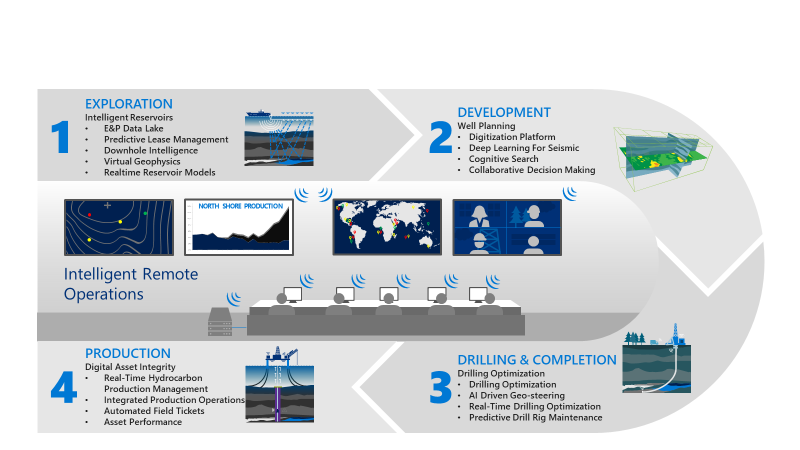 Drilling has been historically about collecting a lot of data, but not utilizing it well. AI can provide significant improvements in hitting the right production zones with geosteering. Large-scale HPC simulations can reduce drilling time. For example, we recently used these capabilities to help a services company optimize their rig operations by reducing the amount of time needed to process logging while drilling data from months to just days. Extraordinary! And Seadrill, the leading oil and gas deep-water driller, is using Microsoft Azure and Power BI to bring together huge amounts of safety, operations and financial data from various systems and turn these into actionable insight.