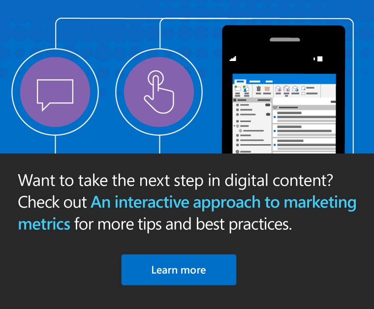 Creating interactive content gives your brand the opportunity to adapt and evolve your campaigns based on input taken directly from your audience. As you create your own interactive strategy, consider what problems you hope to solve—are you looking for higher website return rates, improved bounce rates, more conversions? Set realistic goals for those key performance indicators, and monitor your performance. Then, as your content starts to take off, adapt it accordingly. Interactive content provides you with the tools to not only collect, but manage that data in real time and tweak what isn’t working and emphasize what is to create a more inviting and intuitive customer experience. To learn more about the basics of interactive content and the many forms it takes, be sure to check out the next post in the series, How interactive experiences bring your content to life and keep an eye on Microsoft in Marketing for more great tips for transforming your content campaigns into dynamic experiences.
